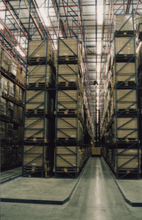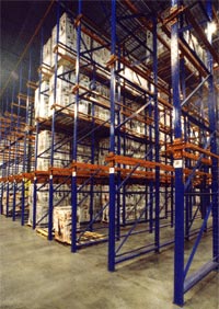 Drives In y Drive Through: Gracias a su mínimo número de pasillos, las estanterías tipo drive-in (penetrable) ofrecen una utilización máxima del espacio disponible. Son ideales para almacenar productos cuya rotación no es un factor esencial. Se recomiendan para depósitos donde exista un alto número de paletas (mínimo de 8 a 12) por cada artículo. Sólo se requiere un mínimo número de pasillos para que el montacargas maniobre, por lo que la mayor parte del espacio disponible se puede destinar a almacenamiento.